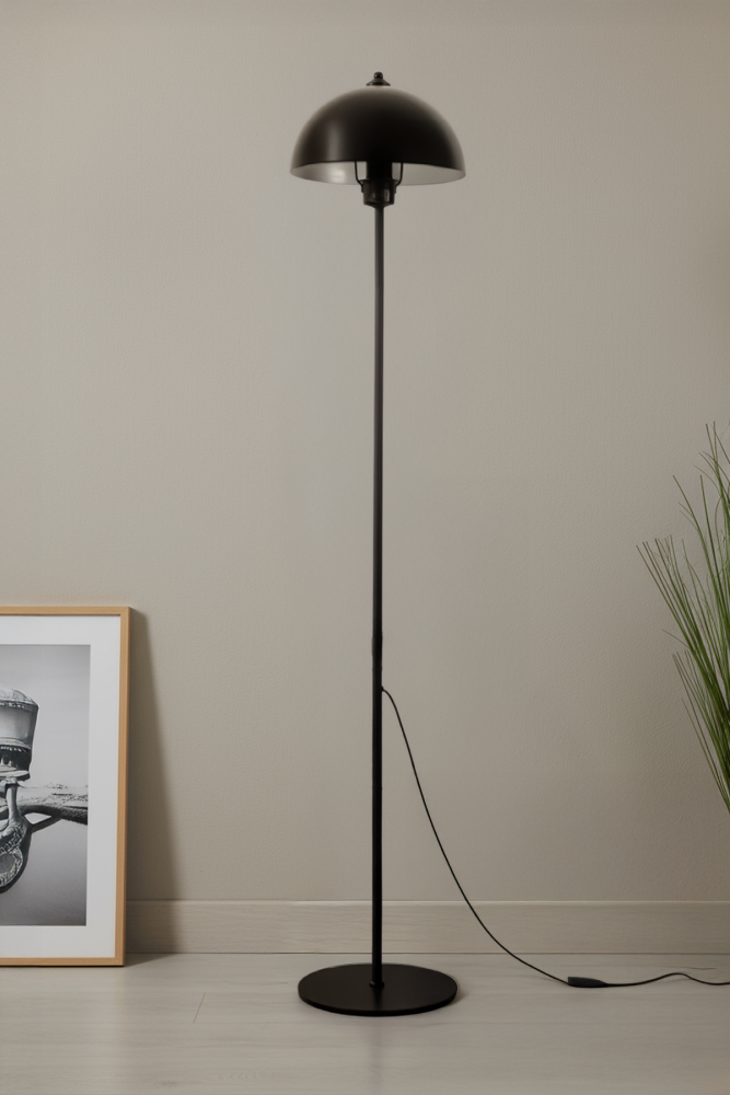 Son dönemin en popüler trendi olan Mantar Başlık tasarımı, ışığı çevreye dağıtmak yerine aşağıya doğru yumuşak ve odaklı bir şekilde indirir. Siyah başlığın içinden süzülen ışık, odanızda "kuytu", sakin ve son derece dinlendirici bir ambiyans yaratır.