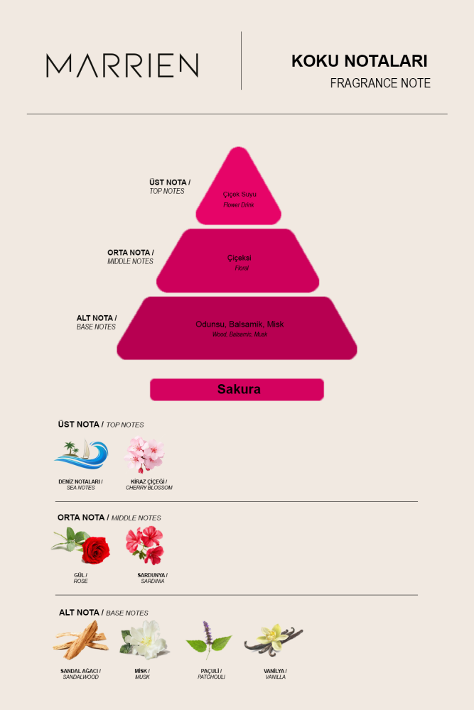 Marrien Sakura, sıradan bir Ortam kokusu olmanın ötesinde, baharın ruhunu taşıyan, huzur dolu bir Ev kokusu deneyimidir.